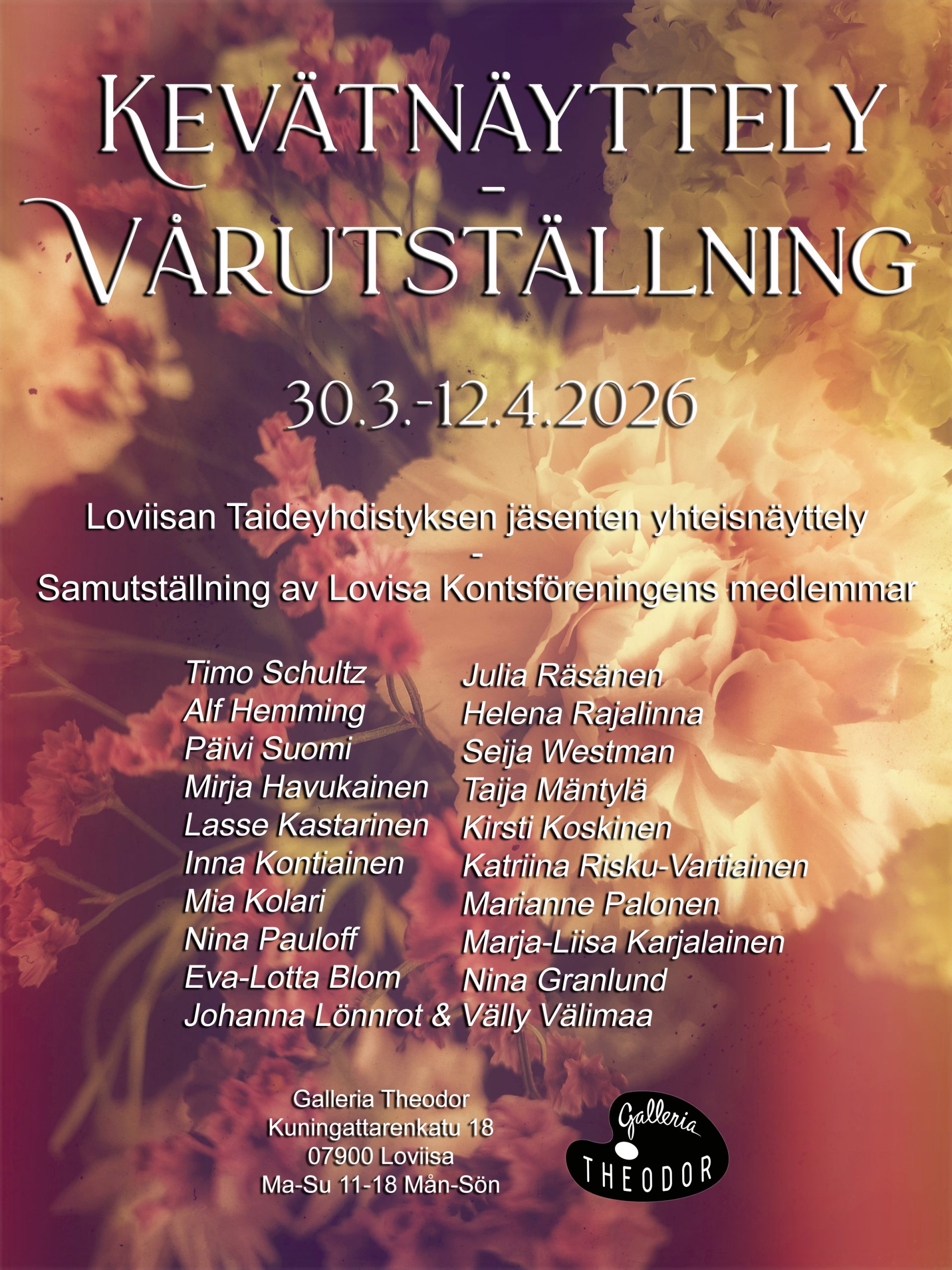 Loviisan taideyhdistyksen Galleria Theodor sijaitsee Loviisan ydinkeskustassa. Olemme kulttuurin monitoimijoita. Järjestämme tilassamme näyttelyitä ja tapahtumia kymmenittäin vuoden aikana.